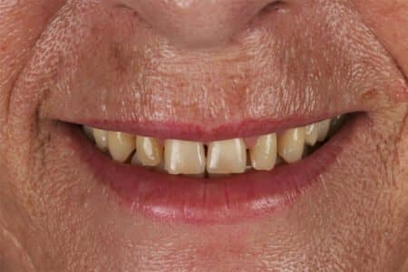 Mª Ángeles arrojaba varios problemas de salud bucodental. Le faltaban piezas, tenía los dientes separados y amarillentos y tenía un problema en las encías. Tras un estudio en profundidad, realizamos un plan personalizado que contemplaba soluciones de ortodoncia, implantes dentales y carillas dentales.
