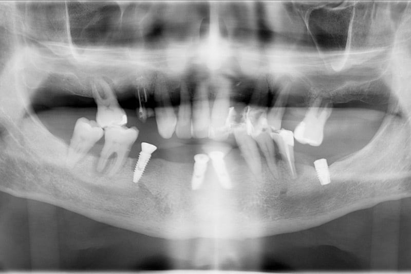 Sin controlar sus problemas de salud oral y de periodontitis, le colocaron implantes dentales, en una posición incorrecta y bajo unas condiciones de salud que propiciaron una infección en esos primeros implantes y por consiguiente la pérdida de hueso y de encía.